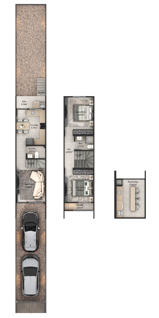 Casas 01 e 02 – Triplex com área de festas