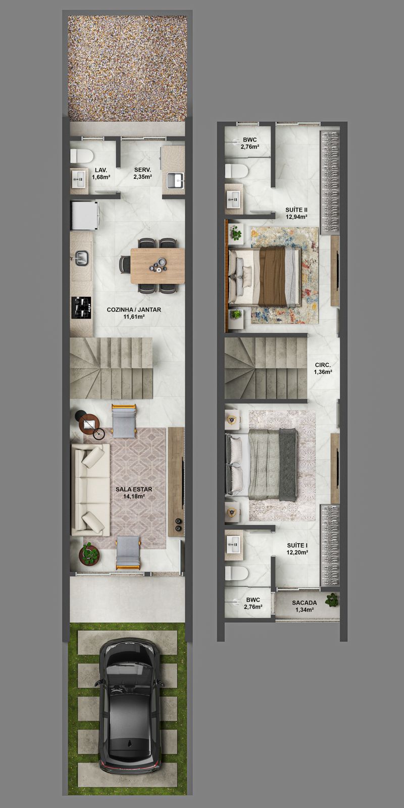 2 suítes, sendo 1 com sacada